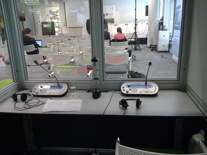 Často se používá na mezinárodních konferencích. Tlumočníci sedí v
